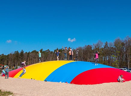 • Huśtawki, piaskownice, poduchy do skakania